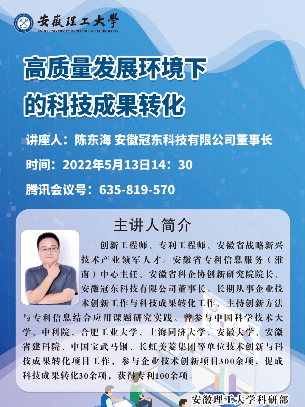 安徽冠东科技有限公司董事长陈东海名人讲座:高质量发展环境下的科技成果转化